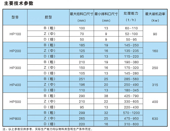 (1)液壓圓錐破的大給礦尺寸≤85%給礦口尺寸,否則會(huì)導(dǎo)致圓錐破產(chǎn)量的降低和零件的損壞。