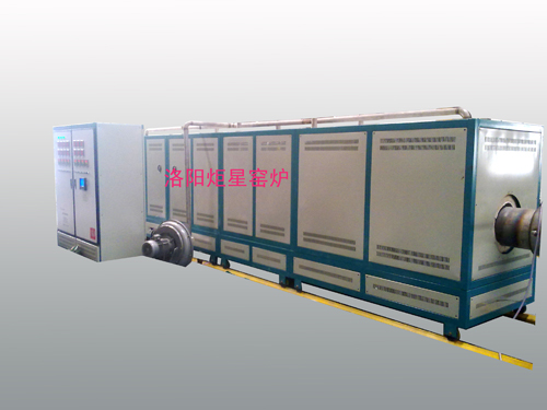 3、爐體結(jié)構(gòu),電爐外觀采用高溫噴塑,耐溫、耐氧化、耐酸堿;雙色搭配是外觀大方、美觀;外殼采用國標(biāo)角鋼、冷軋板焊接而成,雙層外殼,內(nèi)外隔離,風(fēng)冷結(jié)構(gòu),外表溫度不大于40℃;爐體采用國標(biāo)角鋼、冷軋板精細(xì)焊接而成,再用車床精細(xì)加工,起到好的密封效果;每段爐體下方安裝有移動輪,移動輪在軌道上行駛電爐直線運動,軌道(共五段)總長15mm,可拆卸;爐體連接有螺絲連接和輔助搭扣鎖;在電爐爐體的第一段和尾段外安裝有導(dǎo)向軸承,方便爐管的安裝,爐體結(jié)構(gòu)考慮將來加長設(shè)計,為后期電爐改造預(yù)留設(shè)計。